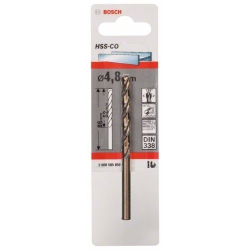 Der HSS-Co Spiralbohrer hat beim Bohren von rostfreiem Stahl eine lange Lebensdauer. Für diese verlängerte Lebensdauer sorgen die Metalllegierung mit 5 % Cobaltgehalt und der aus dem Vollen geschliffene HSS-Stahl mit ausgezeichneter Oberflächengüte, Verschleißfestigkeit und Hitzeschutz. Die zwei Schneidekanten und zwei Spiralnuten entfernen das Spangut schnell und verlängern damit zusätzlich die Lebensdauer. Dieser Bohrer bohrt legierten und unlegierten Stahl, rostfreien Stahl, Gusseisen, Gussstahl sowie säure- und hitzebeständigen Stahl. Der HSS-Co Spiralbohrer wird nach DIN 338 gefertigt. Er gehört zum Bohrertyp N (kleiner Seitenspanwinkel) mit Bohrspitze 135 Grad und Durchmessertoleranz h8. Die Bohrspitze mit Kreuzanschliff ermöglicht aktiven Bohransatz und perfektes Zentrieren ohne Wandern.