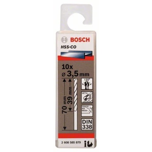 Der HSS-Co Spiralbohrer hat beim Bohren von rostfreiem Stahl eine lange Lebensdauer. Für diese verlängerte Lebensdauer sorgen die Metalllegierung mit 5 % Cobaltgehalt und der aus dem Vollen geschliffene HSS-Stahl mit ausgezeichneter Oberflächengüte, Verschleißfestigkeit und Hitzeschutz. Die zwei Schneidekanten und zwei Spiralnuten entfernen das Spangut schnell und verlängern damit zusätzlich die Lebensdauer. Dieser Bohrer bohrt legierten und unlegierten Stahl, rostfreien Stahl, Gusseisen, Gussstahl sowie säure- und hitzebeständigen Stahl. Der HSS-Co Spiralbohrer wird nach DIN 338 gefertigt. Er gehört zum Bohrertyp N (kleiner Seitenspanwinkel) mit Bohrspitze 135 Grad und Durchmessertoleranz h8. Die Bohrspitze mit Kreuzanschliff ermöglicht aktiven Bohransatz und perfektes Zentrieren ohne Wandern.