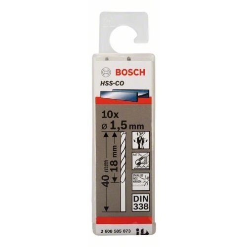Der HSS-Co Spiralbohrer hat beim Bohren von rostfreiem Stahl eine lange Lebensdauer. Für diese verlängerte Lebensdauer sorgen die Metalllegierung mit 5 % Cobaltgehalt und der aus dem Vollen geschliffene HSS-Stahl mit ausgezeichneter Oberflächengüte, Verschleißfestigkeit und Hitzeschutz. Die zwei Schneidekanten und zwei Spiralnuten entfernen das Spangut schnell und verlängern damit zusätzlich die Lebensdauer. Dieser Bohrer bohrt legierten und unlegierten Stahl, rostfreien Stahl, Gusseisen, Gussstahl sowie säure- und hitzebeständigen Stahl. Der HSS-Co Spiralbohrer wird nach DIN 338 gefertigt. Er gehört zum Bohrertyp N (kleiner Seitenspanwinkel) mit Bohrspitze 135 Grad und Durchmessertoleranz h8. Die Bohrspitze mit Kreuzanschliff ermöglicht aktiven Bohransatz und perfektes Zentrieren ohne Wandern.