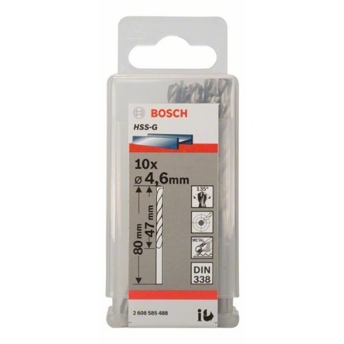 Der geschliffene HSS-Spiralbohrer bohrt in Metall mit höchster Präzision. Die selbstzentrierende Bohrspitze mit Kreuzanschliff und einem Spitzenwinkel von 135 Grad ermöglicht perfektes Zentrieren ohne Wandern. Durch die Bohrspitze mit Kreuzanschliff erübrigen sich Ankörnen oder Vorbohren bis zu 10 mm Durchmesser. Dieser präzisionsgeschliffene Bohrer aus HSS Stahl bohrt 40 % schneller und erfordert 50 % weniger Anpresskraft als herkömmlich geschliffene HSS-Bohrer. Er eignet sich zum Bohren von Löchern in legierten und unlegierten Stahl, Gussstahl, Gusseisen, Sintereisen, Temperguss, Nichteisenmetalle und Hartkunststoff. Der geschliffene HSS-Spiralbohrer wird nach DIN 338 gefertigt. Er gehört zum Bohrertyp N (kleiner Seitenspanwinkel) mit Bohrspitze 135 Grad und Durchmessertoleranz h8.