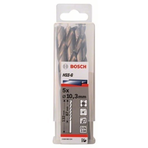 Der geschliffene HSS-Spiralbohrer bohrt in Metall mit höchster Präzision. Die selbstzentrierende Bohrspitze mit Kreuzanschliff und einem Spitzenwinkel von 135 Grad ermöglicht perfektes Zentrieren ohne Wandern. Durch die Bohrspitze mit Kreuzanschliff erübrigen sich Ankörnen oder Vorbohren bis zu 10 mm Durchmesser. Dieser präzisionsgeschliffene Bohrer aus HSS Stahl bohrt 40 % schneller und erfordert 50 % weniger Anpresskraft als herkömmlich geschliffene HSS-Bohrer. Er eignet sich zum Bohren von Löchern in legierten und unlegierten Stahl, Gussstahl, Gusseisen, Sintereisen, Temperguss, Nichteisenmetalle und Hartkunststoff. Der geschliffene HSS-Spiralbohrer wird nach DIN 338 gefertigt. Er gehört zum Bohrertyp N (kleiner Seitenspanwinkel) mit Bohrspitze 135 Grad und Durchmessertoleranz h8.