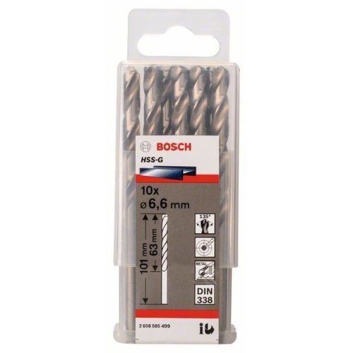 Der geschliffene HSS-Spiralbohrer bohrt in Metall mit höchster Präzision. Die selbstzentrierende Bohrspitze mit Kreuzanschliff und einem Spitzenwinkel von 135 Grad ermöglicht perfektes Zentrieren ohne Wandern. Durch die Bohrspitze mit Kreuzanschliff erübrigen sich Ankörnen oder Vorbohren bis zu 10 mm Durchmesser. Dieser präzisionsgeschliffene Bohrer aus HSS Stahl bohrt 40 % schneller und erfordert 50 % weniger Anpresskraft als herkömmlich geschliffene HSS-Bohrer. Er eignet sich zum Bohren von Löchern in legierten und unlegierten Stahl, Gussstahl, Gusseisen, Sintereisen, Temperguss, Nichteisenmetalle und Hartkunststoff. Der geschliffene HSS-Spiralbohrer wird nach DIN 338 gefertigt. Er gehört zum Bohrertyp N (kleiner Seitenspanwinkel) mit Bohrspitze 135 Grad und Durchmessertoleranz h8.