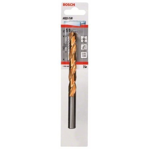 Der geschliffene HSS-TiN Spiralbohrer erreicht beim Bohren von Metall eine maximale Lebensdauer. Bei Verwendung eines geeigneten Kühlsystems sind wegen des Titan-Nitrid-Besatzes die Reibung und der Verschleiß so gering wie überhaupt möglich. Die hohe Oberflächenqualität dieses geschliffenen HSS-Spiralbohrers sorgt für verlängerte Nutzbarkeit. Er eignet sich für legierten und unlegierten Stahl, Temperguss, Gusseisen, Sintereisen, Neusilber, Kupfer, Bronze und Hartkunststoffe wie Plexiglas. Der HSS-TiN Spiralbohrer wird nach DIN 338 gefertigt. Er gehört zum Bohrertyp N (kleiner Seitenspanwinkel) mit Bohrspitze 135 Grad und Durchmessertoleranz h8. Die Bohrspitze mit Kreuzanschliff ermöglicht aktiven Bohransatz und perfektes Zentrieren ohne Wandern. Nicht geeignet für Aluminium. Nur mit Kühlmittel verwenden.