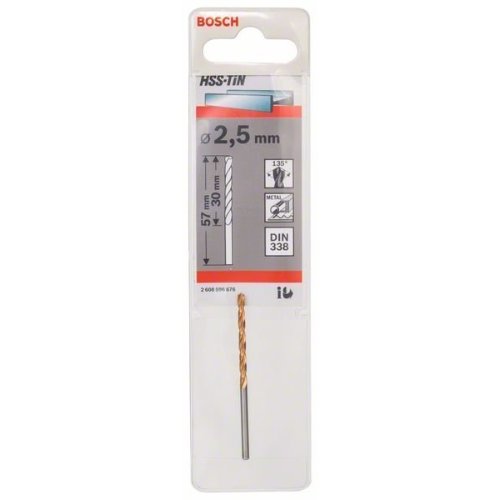 Der geschliffene HSS-TiN Spiralbohrer erreicht beim Bohren von Metall eine maximale Lebensdauer. Bei Verwendung eines geeigneten Kühlsystems sind wegen des Titan-Nitrid-Besatzes die Reibung und der Verschleiß so gering wie überhaupt möglich. Die hohe Oberflächenqualität dieses geschliffenen HSS-Spiralbohrers sorgt für verlängerte Nutzbarkeit. Er eignet sich für legierten und unlegierten Stahl, Temperguss, Gusseisen, Sintereisen, Neusilber, Kupfer, Bronze und Hartkunststoffe wie Plexiglas. Der HSS-TiN Spiralbohrer wird nach DIN 338 gefertigt. Er gehört zum Bohrertyp N (kleiner Seitenspanwinkel) mit Bohrspitze 135 Grad und Durchmessertoleranz h8. Die Bohrspitze mit Kreuzanschliff ermöglicht aktiven Bohransatz und perfektes Zentrieren ohne Wandern. Nicht geeignet für Aluminium. Nur mit Kühlmittel verwenden.