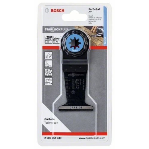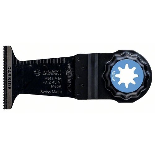 Das Blatt Starlock PAIZ 45 AT Metal Max sorgt für breite Schnitte und höhere Lebensdauer beim Schneiden von gehärtetem Metall. Die hochwertigen Carbide-Zähne zertrennen auch extremes Material wie gehärtetes Eisen und sehr abrasives Material und bewahren dabei ihre Robustheit und höchsten Verschleißwiderstand. Außerdem ist die flache Schneidekante ideal zum Abschneiden geeignet. Und die Breite von 45 mm verhindert ein Abrutschen beim Schneiden von Schrauben mit großem Durchmesser. Das Blatt zerschneidet Metalle, Gipskartonplatten, Zementfaserplatten und faserverstärkte Kunststoffe. Das System Starlock Plus ermöglicht sehr schnelle, tiefe und vielfältige Tauchschnitte. Zudem ermöglicht das Starlock-Aufnahmesystem schnelle Blattwechsel in drei Sekunden ohne Blattberührung. Das spezielle Starlock-Aufnahmesystem ermöglicht durch seine dreidimensionale enge Passung maximale Kraftübertragung zwischen Maschine und Zubehör.