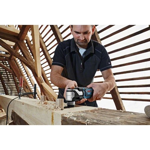 Multi-Cutter GOP 55-36. Das kabelgebundene Multifunktionswerkzeug GOP 55-36 Professional ist das leistungsstärkste Gerät für härteste Anwendungen in der Bosch StarlockMax-Klasse. Es verfügt über einen beeindruckenden 550-Watt-Motor und die einzigartige Starlock-Schnittstelle mit einer optimierten dreidimensionalen Kraftschlussverbindung zwischen Maschine und Zubehör, die für eine größtmögliche Kraftübertragung sorgt. Das Multifunktionswerkzeug ist auf Langlebigkeit ausgelegt und zeichnet sich durch robuste Metallkomponenten aus. Darüber hinaus ermöglicht die Snap-In-Funktion einen schnellen und einfachen Werkzeugwechsel. Dieses Elektrowerkzeug eignet sich für die Entfernung von Fenstern, die Renovierung von Dehnungsfugen und das Schneiden von Nuten in Holzrahmenkonstruktionen. Es kann für Holz, Plastik und Metall eingesetzt werden. Es ist kompatibel mit dem Starlock-, StarlockPlus- und StarlockMax-System. Ferner verfügt der GOP 55-36 Professional über Funktionen wie konstante Drehzahl, Softgrip und Drehzahlvorwahl. Im Lieferumfang enthalten: 1x Starlock BIM Segementsägeblatt ACZ 100 BB, Wood + Metal (2 608 661 633), 1x Starlock Carbide-RIFF Schleifplatte AVZ 78 RT2, Grout + Abrasive (2 608 661 648), 1x Starlock Carbide-RIFF Segementsägeblatt ACZ 85 RT3, Grout + Abrasive (2 608 661 642), 1x StarlockMax BIM Tauchsägeblatt MAIZ 32 APB, Curved-Tec, Wood + Metal (2 608 662 571), 1x StarlockMax BIM Tauchsägeblatt MAII 52 APB, Curved-Tec, Wood + Metal (2 608 662 574), 1x StarlockMax Carbide Tauchsägeblatt MAIZ 32 AT, Metal (2 608 662 567), 1x StarlockMax Carbide-RIFF Tauchsägeblatt MATI 68 RT3, Grout + Abrasive (2 608 662 577), 1x StarlockMax HCS Tauchsägeblatt MAII 32 SC, Multi Material (2 608 662 583), 1x StarlockMax HCS Tauchsägeblatt MAIZ 32 EPC, Curved-Tec, Wood (2 608 662 568), 25x Schleifblatt, K 10x80, 10x120, 5x240 (2 608 621 105), 1x Starlock Deltaschleifplatte AVZ 93 G (2 608 000 493), L-BOXX 136 (1 600 A01 2G0), Starlock Vakuumadapter mit Spannhals (2 608 000 636)
