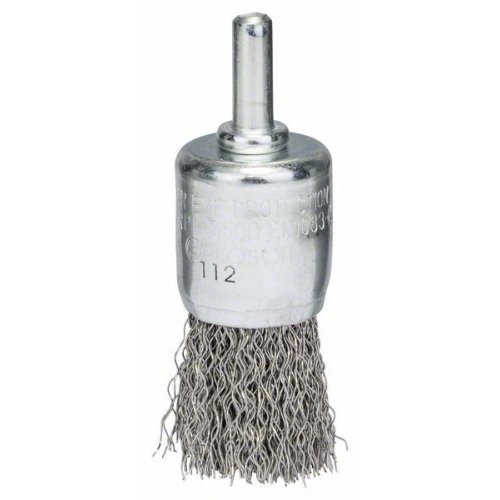 Die Pinselbürste liefert ein gutes feines Oberflächenfinish. Sie ist mit gewelltem Draht ausgestattet und ideal für leichte bis mittelschwere Reinigungsarbeiten an kleinen Flächen geeignet. Die Form der Pinselbürste macht sie ideal geeignet zum Reinigen ausgesprochen schwer zugänglicher Stellen wie Ecken und Innenflächen von Rohren und Profilen aus rostfreiem Stahl, Aluminium und anderen Nichteisenmetallen. Sie ist auch zum Entfernen von Rost und Farbe sowie zum Schruppen und Mattschleifen geeignet. Drahtbüsten werden in verschiedenen Stärken für verschiedene Schleifgrade angeboten. Stärkerer Draht arbeitet intensiver und schafft schnell Oberflächen, die allerdings grob sind. Dünnerer Draht sorgt für feinere und glattere Oberflächen.