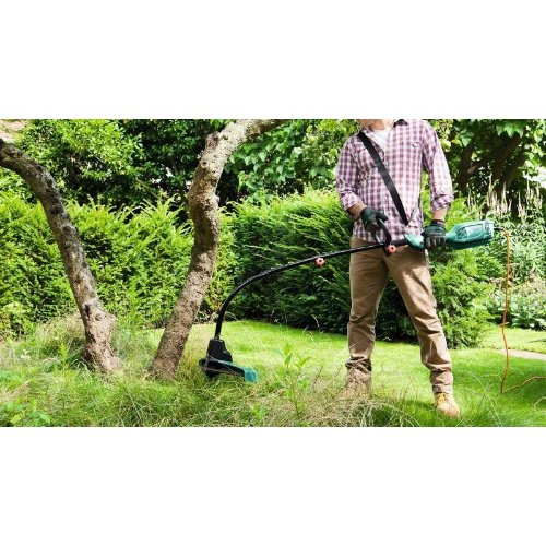 Rasentrimmer ART 35. Für schwere Trimmarbeiten – Schneiden von dickem, langem Gras und Wiesen. Hohe Motorleistung – ähnliche Effizienz wie höher motorisierte Trimmer. Mühelose Werkzeughandhabung – gute Gewichtsverteilung, Schultergurt und Handgriffe. Leicht und robust – kraftvoll und dennoch einfach zu handhaben und zu transportieren. Schneiden von hartem, langem Gras, Wiesen und wilden Gartenecken. Stabiler Schaft schützt das Werkzeug beim Herunterfallen auf harte Oberflächen. Im Lieferumfang enthalten: Schultergurt, Fadenspule 8 m (F 016 800 345), Karton