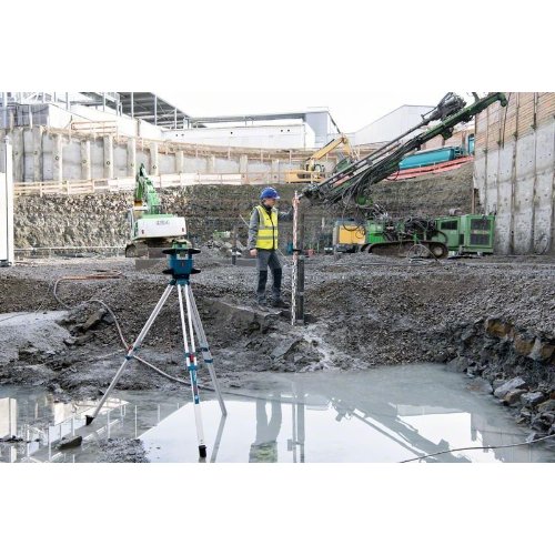 Rotationslaser GRL 650 CHVG, Der robuste Rotationslaser GRL 650 CHVG Professional mit Bluetooth®-Konnektivität setzt neue Maßstäbe für Präzision und Effizienz beim Nivellieren auf der Baustelle. Grüne Lasertechnologie sorgt für eine bessere Sichtbarkeit bei unterschiedlichen Lichtverhältnissen. Der strapazierfähige Rotationslaser eignet sich für die Verwendung bei rauen Baustellenbedingungen und schlechtem Wetter, übersteht Stürze bis zu 2 m bei umkippendem Stativ und erfüllt die IP68-Anforderungen zum Schutz gegen Staub und Wasser. Die Verwendung der Levelling Remote App für die Einstellungsübersicht und Fernbedienung spart Zeit und erlaubt volle Konzentration auf die Arbeit. Der vielseitige GRL 650 CHVG Professional eignet sich besonders für Nivellier- und Planierarbeiten im Außenbereich sowie für die Installation von Wänden, Decken und Klimaanlagen im Innenbereich. Eine lange Laufzeit für mehr Komfort durch die Wahl zwischen zwei Optionen: 18-V-Li-Ion-Akku von Bosch oder Alkali-Batterien (Monozellen). Optimaler Komfort dank High-Tech-Ausstattung wie Display, Doppelneigungsfunktion, Neigungsspeicherung und hochwertiger Empfänger (LR 65 G Professional). Laser-Empfänger LR 65 G Professional (0 601 069 T00); Empfängerhalterung RB 60 Professional; Fernbedienung RC 6 Professional; 1 x Akku ProCORE18V 4.0Ah (1 600 A01 6GB); Schnellladegerät GAL 18V-40 Professional (1 600 A01 9RJ); Akku-Adapter BA 1 Professional; Wandhalter WM 6 Professional; 4 x Batterie LR20 1,5V (D); 4 x 1,5 V-LR6-Batterie (AA); Laserzieltafel; Lasersichtbrille (grün) (ET-Nr. 1 608 M00 05J); Handwerkerkoffer; Baustativ BT 300 HD Professional (0 601 091 400)