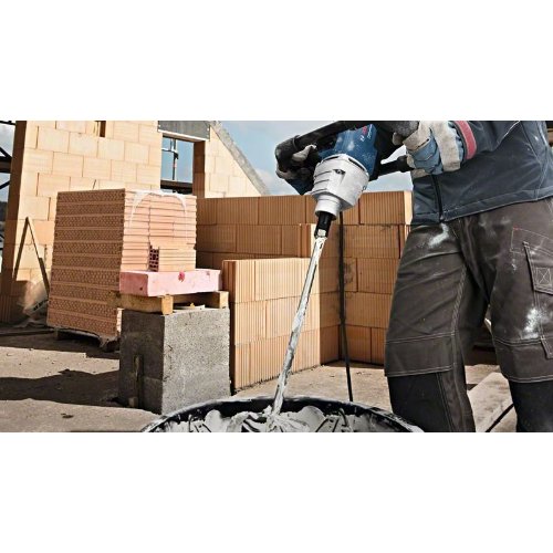 Rührwerk GRW 12 E. Das kabelgebundene GRW 12 E Professional ist ein einfach zu bedienendes 1-Gang-Rührwerk. Sein ergonomischer Rahmengriff ermöglicht eine komfortable und einfache Handhabung. Der starke 1.200-Watt-Motor liefert eine kraftvolle Rührleistung mit schnellen Ergebnissen. Für eine einfache Regelung der Rührgeschwindigkeit ist es mit einem Gasgebeschalter ausgestattet. Dieses Elektrowerkzeug eignet sich zum Rühren von Putz und Farbe bis 50 kg. Es ist kompatibel mit verschiedenen Rührkörben bis zu einem Durchmesser von 140 mm. Der GRW 12 E Professional arbeitet mit einer Leerlaufdrehzahl von bis zu 1.000 min-1. Im Lieferumfang enthalten: Rührkorb 140 mm Ø (2 607 990 023)