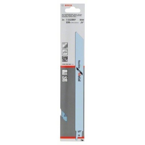 Das S 1122 EF Flexible for Metal Säbelsägeblatt ist für bündiges Schneiden in Metall optimiert. Seine Länge von 225 mm und die Standard-Wandstärke von 0,9 mm ermöglichen exzellente bündige Schnitte. Dank der feinen Zahnteilung (1,4 mm) ist auch das Schneiden von Stahl mit einer gängigen Wanddicke möglich. Das Blatt aus Bimetall ist für das Schneiden von Stahl mit normaler Stärke geeignet, während die feine Zahnteilung ideal für Rohre und Profile mit einer Dicke von 1,5–4 mm ist. Die Standardlänge von 225 mm bietet eine Schnittleistung von bis zu 175 mm.