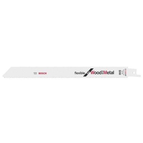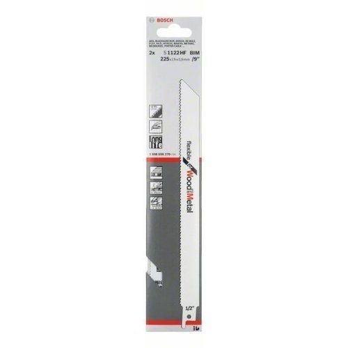 Das S 1122 HF Flexible for Wood and Metal Säbelsägeblatt eignet sich für bündige Schnitte in Holz und Metall. Die Standard-Wandstärke (0,9 mm) mit einer Standardlänge (225 mm) ermöglicht bündiges Schneiden. Zudem kombiniert die Bimetallbasis ein Blatt aus HCS-Stahl (Stahl mit hohem Kohlenstoffgehalt) mit einer HSS-Zahnleiste (Schnellarbeitsstahl), weswegen das Säbelsägeblatt ideal für das Bearbeiten von Paletten ist. Die mittlere Zahnteilung (2,5 mm) schneidet alle weichen Nägel und Befestigungen, die bei Palettenkonstruktionen üblich sind. Es verfügt über eine Standardlänge von 225 mm mit einer Schnittleistung von bis zu 175 mm.