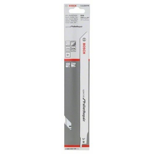 Das S 1125 VFR Special for Pallet Repair Säbelsägeblatt ist bruchsicher für kontinuierliche und mühelose Schnitte in Holz und Metall. Die Reverse-Spitze verhindert Verklemmen, Verbiegen und Brechen des Schafts, für eine lange Lebensdauer. Die Vario Tooth-Form reduziert Vibrationen für glatte Schnitte. Die dicke Wandstärke (1,25 mm) erhöht die Stabilität noch weiter. Die Zahnleiste aus gehärtetem HSS (Schnellarbeitsstahl) des Bimetallblatts ist zudem mit elastischem HCS (Kohlenstoffstahl) verstärkt, wodurch es ideal für das Bearbeiten von Paletten geeignet ist. Die feine bis mittlere Vario Tooth-Zahnteilung (1,8/2,6 mm) schneidet durch weiche Nägel und Befestigungen bei Palettenkonstruktionen. Dieses Säbelsägeblatt hat eine Standardlänge (225 mm) für eine Schnittleistung von bis zu 165 mm.