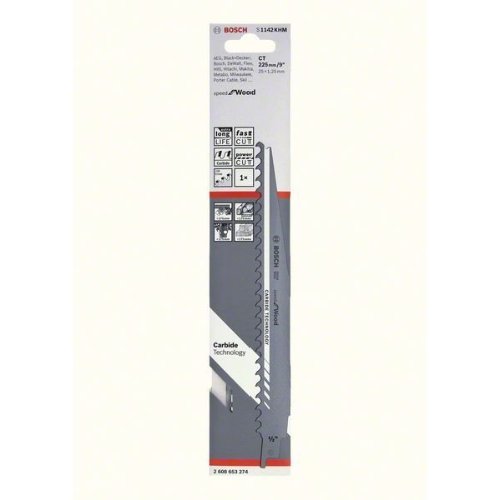 Das S 1142 KHM Speed for Wood Säbelsägeblatt sorgt für schnelleres Schneiden in Hartholz beim Entfernen von Baum- und Buschwurzeln. Es besitzt eine besonders lange Lebensdauer aufgrund von Carbide Technology, die für effektives Schneiden bei extrem robusten Einsätzen wie z. B. schwer zu schneidende exotische Hölzer sorgt. Die sehr großen Spanräume des Sägeblatts und 3 Zähne pro Zoll (TPI) sowie ein Zahnabstand von 8 mm sorgen für schnelles Schneiden in alle Holzarten und stellen eine hervorragende Schnittgeschwindigkeit Scheiden von Hartholz, Frischholz oder Wurzeln sicher. Sein 1,25 mm dicker Körper und die höhere Blattbreite von 25 mm ermöglichen die für schwierigste Schnitte erforderliche optimale Stabilität und Festigkeit.