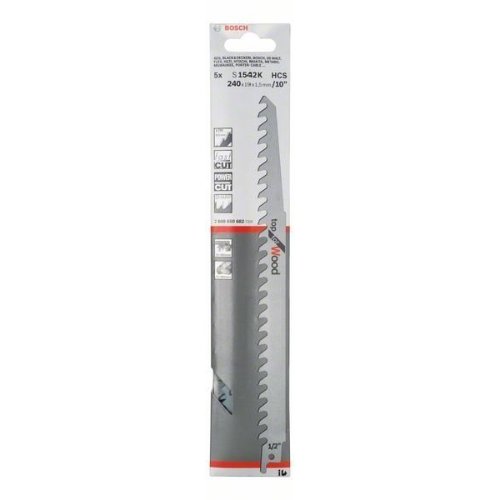 Das S 1542 K Top for Wood Säbelsägeblatt ermöglicht leistungsstarke und schnelle Schnitte in Holz. Die große Zahnteilung (8,5 mm) und die großen Spanräume entfernen Material schnell und effizient. Die scharfgeschliffenen, geschränkten Zähne schneiden schnell und effizient, während die dicke Wandstärke (1,5 mm) ultimative Stabilität für starke Schnitte bietet. Das Säbelsägeblatt aus HCS-Stahl (Stahl mit hohem Kohlenstoffgehalt) eignet sich für das Schneiden von weichem Holz, Bauholz und allen nichtabrasiven Holzwerkstoffen bei Bauarbeiten. Es verfügt über eine lange Länge von 240 mm, die eine Schnittleistung von bis zu 190 mm ermöglicht.