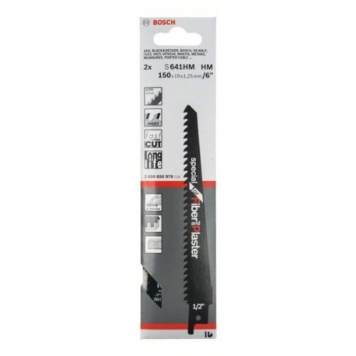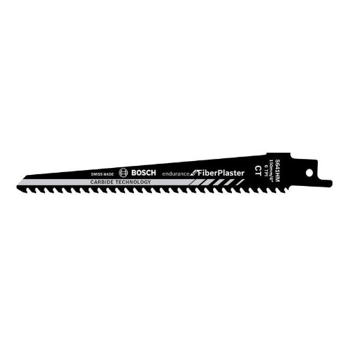 Das S 641 HM Endurance for Fibre Plaster Säbelsägeblatt ist sehr robust und ermöglicht schnelle, durchgängige Kurvenschnitte in Sonderwerkstoffe. Die geschliffenen Carbide-Zähne eignen sich für das Schneiden von hochabrasiven Materialien. Zudem bieten die lange Zahnteilung (4,3 mm) und die geschränkten Zähne schnelle Ergebnisse. Ein dünner Blattkörper bietet einfachen Zugang zu schwer zugänglichen Stellen und macht Kurvenschnitte möglich. Dieses Säbelsägeblatt verfügt über eine Zahnleiste aus Carbide, die mit Carbide Technology an einen hochelastischen Kohlenstoffstahlkörper geschweißt ist, wodurch auch die robustesten abrasiven Materialien, wie z. B. Zementfaserplatten, Gipskartonplatten und Wandplatten aus Beton, geschnitten werden können. Die Standardlänge von 150 mm ermöglicht bis zu 100 mm tiefe Schnitte.