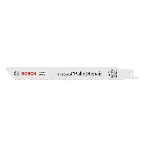 Das S 722 VFR Special for Pallet Repair Säbelsägeblatt ist bruchsicher für kontinuierliche und mühelose Schnitte in Holz und Metall. Die Reverse-Spitze verhindert Verklemmen, Verbiegen und Brechen des Schafts, für eine lange Lebensdauer. Die Vario Tooth-Form reduziert Vibrationen und ermöglicht glatte Schnitte. Die Zahnleiste aus gehärtetem HSS (Schnellarbeitsstahl) des Bimetallblatts ist mit elastischem HCS (Kohlenstoffstahl) verstärkt, wodurch es ideal für das Bearbeiten von Paletten geeignet ist. Die feine bis mittlere Vario Tooth-Zahnteilung (1,8/2,6 mm) schneidet zudem durch weiche Nägel und Befestigungen bei Palettenkonstruktionen. Mit der Länge von 190 mm lassen sich äußere Blöcke und Peripheriebaugruppen mit einer Schnittleistung von bis zu 125 mm schneiden.