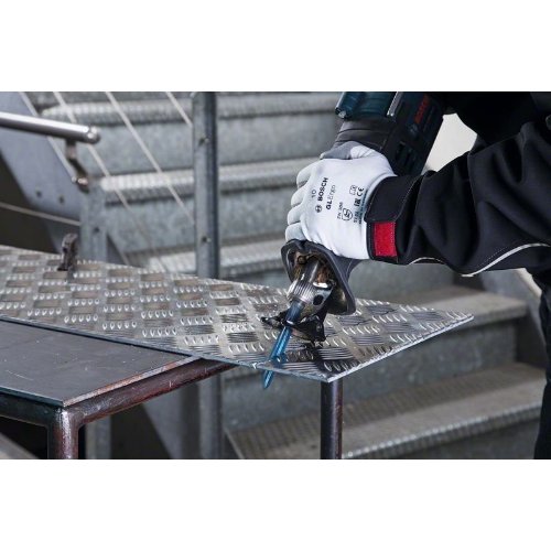 Das S 922 EHM Endurance for Stainless Steel bietet ultimative Blattlebensdauer bei Metall. Dank der Zahnleiste aus Carbide bietet es exzellente Festigkeit und Stabilität für eine maximale Lebensdauer. Zudem sind die präzisionsgeschliffenen Zähne ideal für das Schneiden von Edelstahl. Seine Zahnleiste ist mit der Carbide Technology an einen hochelastischen Kohlenstoffstahlkörper geschweißt, wodurch dieses Säbelsägeblatt durch sehr robuste Materialien schneiden kann. Zudem kann es aufgrund der feinen Zahnteilung (1,8 mm) für Metall mit einer Dicke von 1,5–4 mm verwendet werden. Es verfügt über eine Standardlänge von 150 mm mit einer Schnittleistung von bis zu 100 mm.