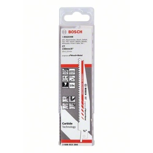 Das S 956 XHM Progressor for Wood and Metal Säbelsägeblatt bietet eine ultimative Blattlebensdauer für den Abriss dicker und dünner Materialien. Die geschliffenen Carbide-Zähne eignen sich speziell für das Zerlegen von hochfestem Stahl in Holz. Die progressiv ansteigende Zahnteilung ermöglicht schnelle Schnitte in Materialien mit unterschiedlichen Dichten, während der breite, verjüngte Körper (25 mm) und die dicke Wandstärke (1,25 mm) die für Abrissarbeiten notwendige Stabilität bieten. Zudem wurden die Zähne mit Carbide Technology an einen hochelastischen Stahlkörper geschweißt, was dieses Säbelsägeblatt für die Zerlegung von robustem Holz und Material geeignet macht. Es verfügt über eine Standardlänge von 150 mm, die eine Schnittleistung von bis zu 100 mm ermöglicht.