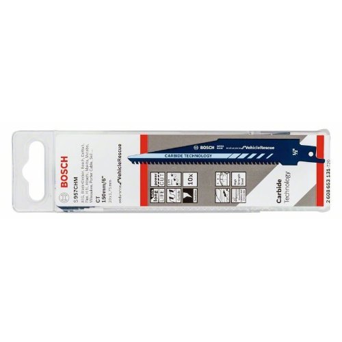 Das S 957 CHM Endurance for Vehicle Rescue Säbelsägeblatt bietet eine ultimative Blattlebensdauer und starke Schnitte in Automobilstahl. Carbide-Zähne ermöglichen höchste Belastbarkeit bei Rettungsarbeiten und beim Zerlegen von Fahrzeugen. Die dicke Wandstärke (1,35 mm) bietet exzellente Stabilität bei Metalldemontage; der verjüngte Körper und der hinterschliffene erste Zahn ermöglichen Tauchschnitte. Die Zähne werden mit der Carbide Technology an den hochelastischen Stahlkörper geschweißt. Das Blatt ist sogar zum Schneiden von härtesten Materialien geeignet. Die mittlere Zahnteilung (3 mm) ist ideal zum Schneiden von A-, B- und C-Fahrzeugsäulen. Die Standardlänge (150 mm) schneidet bis zu 100 mm tief. Das Blatt ideal für Windschutzscheiben, Dächer und sogenannte "dritte Türen".