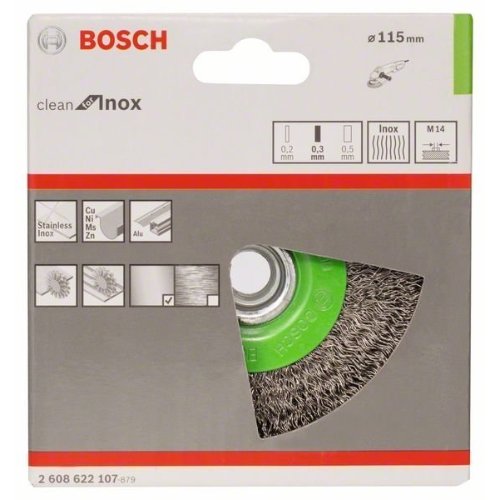 Die Scheibenbürste Clean for Inox liefert ein besonders feines Oberflächenfinish. Sie ist mit gewelltem Draht ausgestattet und ideal für leichte bis mittelschwere Reinigungsarbeiten an kleinen Flächen geeignet. Diese Bürste ist ideal zum Entfernen Anlauffarbe auf Schweißnähten und geeignet für das Reinigen mit hoher Drehzahl von kleineren Oberflächen, Kanten und Fugen. Sie ist auch geeignet zum Entfernen von Rost und Farbe, Schruppen und Mattschleifen von rostfreiem Stahl, Aluminium und anderen Nichteisenmetallen sowie zur Oberflächenstrukturierung dieser Metalle. Drahtbüsten werden in verschiedenen Stärken für verschiedene Schleifgrade angeboten. Stärkerer Draht arbeitet intensiver und schafft schnell Oberflächen, die allerdings grob sind. Dünnerer Draht sorgt für feinere und glattere Oberflächen.