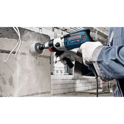 Schlagbohrmaschine GSB 24-2. Die kabelgebundene GSB 24-2 Professional ist eine 2-Gang-Schlagbohrmaschine mit KickBack Control für härtesten Einsatz. Mit 1.100-Watt-Hochleistungsmotor und hohem Drehmoment ideal für die meisten schweren Anwendungen. Erhöhter Anwenderschutz durch KickBack Control. Ausgestattet mit einem robusten Metallgetriebegehäuse ist diese Schlagbohrmaschine extrem robust für eine lange Lebensdauer. Dieses Elektrowerkzeug eignet sich zum Bohren in Mauerwerk, Stein, Holz und Metall. Es ist kompatibel mit der Staubabsaugung GDE 16 Cyl Professional. Die GSB 24-2 Professional verfügt über Funktionen wie Autolock, Überlastkupplung und Drehzahlvorwahl. Im Lieferumfang enthalten: Schnellspannbohrfutter 13 mm (2 608 572 150), Zusatzhandgriff (2 602 025 193), Tiefenanschlag 210 mm (1 613 001 010), L-Case (1 600 A00 M7X), 7-tlg. Holzbohrer-Set (3/4/5/6/7/8/10 mm) (2 607 017 034), Lochsäge-Set (2 608 584 063)