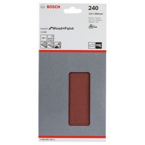 Das Schleifblatt C430 Expert for Wood and Paint zeichnet sich durch seine außergewöhnlich lange Lebensdauer beim Schleifen von Holz-, Furnier- und Hartholzoberflächen aus. Die Oberfläche mit elektrostatisch offen gestreuten Schleifkörnern mit definierten Zwischenräumen gestattet eine gleichmäßige Staubabsaugung und verhindert somit ein Verstopfen des Blattes. Die harte Schleifkörnung ist verschleißfest und gestattet eine längere und wiederholte Blattnutzung. Diese Produkt ist für das Aufrauen und Schleifen von Farben, Lacken, Füllstoffen, Grundierungen und Holzmaterialien vorgesehen und für das Anschleifen von Lack auf Oberflächen geeignet. Es ist zudem geeignet, um bestimmte Materialien nach der Benetzung zu schleifen oder Ränder zu entgraten. Der vollkunstharzgebundene Belag sorgt für Haltbarkeit. Die äußerst flexible C-/B-Papierrückseite gestattet Falten ohne Rissbildung.
