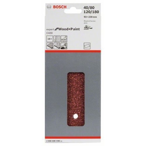 Das Schleifblatt C430 Expert for Wood and Paint zeichnet sich durch seine außergewöhnlich lange Lebensdauer beim Schleifen von Holz-, Furnier- und Hartholzoberflächen aus. Die Oberfläche mit elektrostatisch offen gestreuten Schleifkörnern mit definierten Zwischenräumen gestattet eine gleichmäßige Staubabsaugung und verhindert somit ein Verstopfen des Blattes. Die harte Schleifkörnung ist verschleißfest und gestattet eine längere und wiederholte Blattnutzung. Diese Produkt ist für das Aufrauen und Schleifen von Farben, Lacken, Füllstoffen, Grundierungen und Holzmaterialien vorgesehen und für das Anschleifen von Lack auf Oberflächen geeignet. Es ist zudem geeignet, um bestimmte Materialien nach der Benetzung zu schleifen oder Ränder zu entgraten. Der vollkunstharzgebundene Belag sorgt für Haltbarkeit. Die äußerst flexible C-/B-Papierrückseite gestattet Falten ohne Rissbildung.