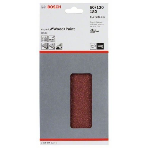 Das Schleifblatt C430 Expert for Wood and Paint zeichnet sich durch seine außergewöhnlich lange Lebensdauer beim Schleifen von Holz-, Furnier- und Hartholzoberflächen aus. Die Oberfläche mit elektrostatisch offen gestreuten Schleifkörnern mit definierten Zwischenräumen gestattet eine gleichmäßige Staubabsaugung und verhindert somit ein Verstopfen des Blattes. Die harte Schleifkörnung ist verschleißfest und gestattet eine längere und wiederholte Blattnutzung. Diese Produkt ist für das Aufrauen und Schleifen von Farben, Lacken, Füllstoffen, Grundierungen und Holzmaterialien vorgesehen und für das Anschleifen von Lack auf Oberflächen geeignet. Es ist zudem geeignet, um bestimmte Materialien nach der Benetzung zu schleifen oder Ränder zu entgraten. Der vollkunstharzgebundene Belag sorgt für Haltbarkeit. Die äußerst flexible C-/B-Papierrückseite gestattet Falten ohne Rissbildung.