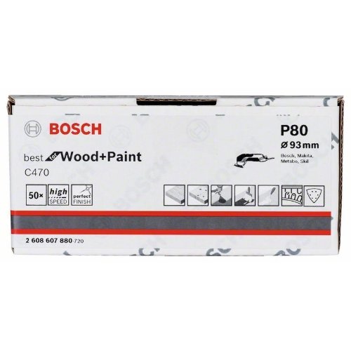 Das Schleifblatt C470 Best for Wood and Paint besitzt eine überragende Materialabtragsrate. Das Produkt besitzt eine Calciumstearatbeschichtung, die ein Verstopfen des Blattes verhindert. Die Oberfläche mit elektrostatisch offen gestreuten Schleifkörnern mit definierten Zwischenräumen ermöglicht eine gleichmäßige Staubabsaugung. Damit eignet sich das Blatt für das Schleifen von Holz, Farbe, Lack, Rauputz, Füllstoffe und Kunststoffe sowie harte Materialien wie Polymere (Corian, Varicor). Das Produkt besteht aus C-/B-Papier und ist mit Schleifkörnern aus Halbedelkorund besetzt. Damit erzielt es eine gleichmäßig hohe Oberflächenqualität. Das Schleifblatt lässt sich mit dem Klettverschlusssystem schnell und einfach handhaben, wechseln und fixieren.