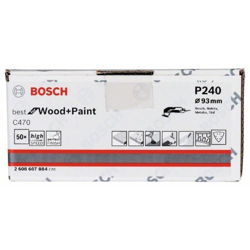 Das Schleifblatt C470 Best for Wood and Paint besitzt eine überragende Materialabtragsrate. Das Produkt besitzt eine Calciumstearatbeschichtung, die ein Verstopfen des Blattes verhindert. Die Oberfläche mit elektrostatisch offen gestreuten Schleifkörnern mit definierten Zwischenräumen ermöglicht eine gleichmäßige Staubabsaugung. Damit eignet sich das Blatt für das Schleifen von Holz, Farbe, Lack, Rauputz, Füllstoffe und Kunststoffe sowie harte Materialien wie Polymere (Corian, Varicor). Das Produkt besteht aus C-/B-Papier und ist mit Schleifkörnern aus Halbedelkorund besetzt. Damit erzielt es eine gleichmäßig hohe Oberflächenqualität. Das Schleifblatt lässt sich mit dem Klettverschlusssystem schnell und einfach handhaben, wechseln und fixieren.