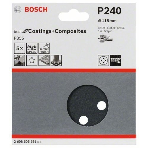 Bosch Schleifblatt F355, 5er-Pack, für Exzenterschleifer