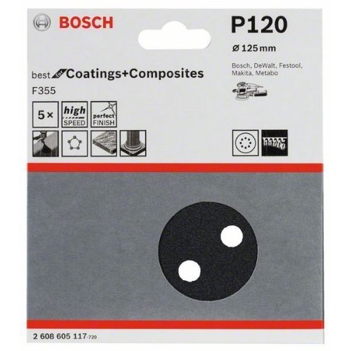 Bosch Schleifblatt F355, 5er-Pack, für Exzenterschleifer