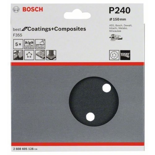 Bosch Schleifblatt F355, 5er-Pack, für Exzenterschleifer
