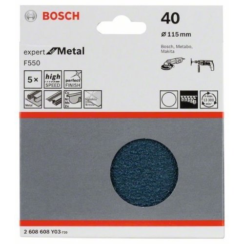 Das Schleifband F550 Expert for Metal besitzt eine überragende Materialabtragsrate auf Metalloberflächen. Die Zirkonkorundkörner kombinieren einen hervorragenden Materialabtrag mit hoher Haltbarkeit, die fast an die von Glasfaserscheiben heranreicht. Die hohe Materialabtragsrate während des Bandlaufs sorgt für minimalen Kraftaufwand, um die gewünschten Ergebnisse zu erzielen. Das vulkanisierte F-Papier bietet Verschleißfestigkeit und Stabilität bei harten Materialien. Es wird verwendet für das Trockenschleifen von Stahl, Stahllegierungen, Edelstahl (Inox) und Titan sowie für das Aufrauen von Oberflächen und Schleifen von Schweißnähten und Übergängen. Es eignet sich auch für das Schleifen, Entgraten, Reinigen und Entrosten von Stahl, Edelstahl, Aluminium sowie NE-Metallen. Dank der Oberfläche mit elektrostatisch geschlossener Streuung und der kühlenden Zusatzstoffe wird Metall optimal abgetragen. Die Vollkunstharzbindung der Schleifkörner auf vulkanisiertem F-Faserpapier sorgt für Verschleißfestigkeit bei härtestem Einsatz. Das Schleifblatt lässt sich dank des Klettverschluss-Befestigungssystems von Bosch schnell und einfach handhaben, wechseln und fixieren.