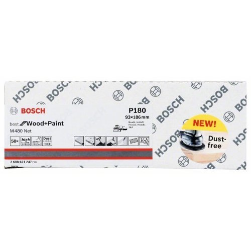 Das Schleifblatt M480 Net Best for Wood and Paint sorgt für ein nahezu staubfreies Schleifen und Aufrauen von Holz und Lackflächen. Die offene Netzstruktur stellt sicher, dass der Schleifstaub vollflächig abgesaugt werden kann. Durch das Design gibt es nur eine minimale Verstopfung, für saubere Ergebnisse ohne Staubansammlung. Das Schleifblatt M480 Net Best for Wood and Paint ist für beständiges Arbeiten und optimales Schleifverhalten aus gestricktem Netz hergestellt. Es ist zum Feinschleifen von Weichholz, Hartholz, Lack, Putz sowie Holz, das Harz oder Öl enthält, geeignet. Es eignet sich außerdem ideal zum Schleifen von Beschichtungen und Verschmutzungen, zum Anschleifen von Lack und zum Aufrauen von Grundierungen. Mit elektrostatischer Körnerstreuung und Vollkunstharz für Langlebigkeit und Verschleißfestigkeit.