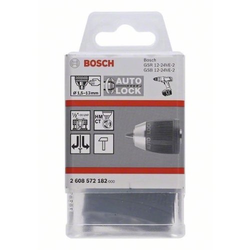 Das Schnellspannbohrfutter bietet eine bequeme Handhabung ohne Schlüssel für maximalen Bedienkomfort. Es erlaubt einfaches und schnelles Einspannen mit einer Hand ohne Schlüssel zum sicheren Befestigen von Zylinder- oder Sechskantschaftbohrern. Schnellspannbohrfutter mit einer Hülse sind für verschiedene Aufnahmen (1/2" - 20 und 3/8" - 24) verfügbar. Sie sind mit den meisten gängigen Bohrern mit Spindelarretierung kompatibel. Informationen zur Schlagfestigkeit oder zur Eignung für die Drehung gegen den Uhrzeigersinn finden Sie in den technischen Daten.