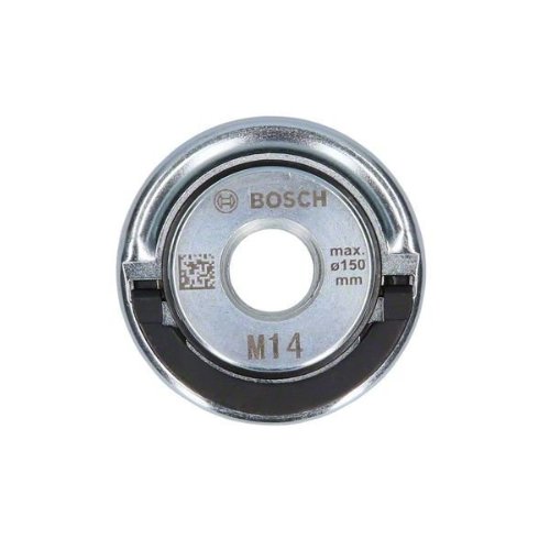 Die Schnellspannmutter M14 ist eine schnellsichernde Spannmutter zum schnellen und einfachen Spannen und Lösen von Winkelschleiferzubehör, Trenn- und Schruppscheiben ohne Werkzeug. Die Scheibe muss beim Zentrieren am Stützflansch ausgerichtet werden und nicht an der Mutter. Passend zu: GWS 18V-10 C; GWS 18V-10 PSC; GWS 18V-10 SC Professional.