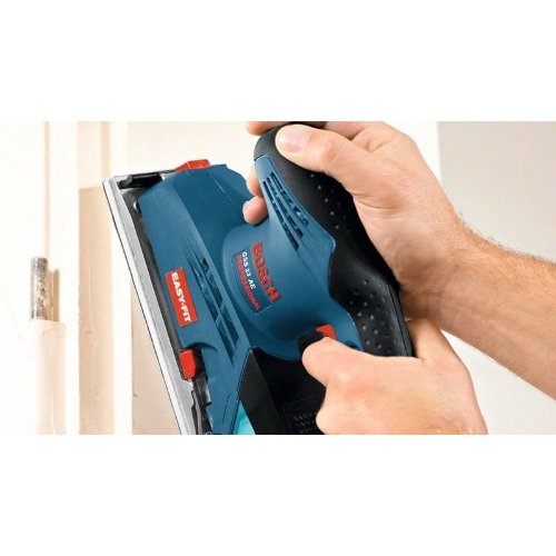 Schwingschleifer GSS 23 AE. Der GSS 23 AE Professional ist Boschs zuverlässiger, kabelgebundener Einstiegs-Schwingschleifer der 230-mm-Klasse für zahlreiche Schleifanwendungen. Sein robustes Design mit verstärktem Klemmsystem sorgt für Haltbarkeit und sehr lange Werkzeuglebensdauer. Die Drehzahlwahl ermöglicht eine Verwendung in verschiedensten Multimaterialien. Er umfasst auch einen Schleifteller mit Klettverschluss und ein Spannsystem für einfache Befestigung und perfekten Sitz der Schleifblätter. Das Gerät wurde zum Schleifen und Zwischenschleifen, Abschleifen von Rahmen sowie zum Feinschleifen konzipiert. Dieser Schwingschleifer ist auf Holz, Furnier, Lack und Füllmasse sowie auf Mineral- und Acrylflächen einsetzbar. Es ist kompatibel mit dem Bosch Click & Clean Staubabsaugsystem. Der GSS 23 AE Professional umfasst auch eine Staubbox mit integriertem Bosch Microfilter-System und einen Softgrip für bequeme Handhabung. Im Lieferumfang enthalten: Handwerkerkoffer, Lochwerkzeug (2 608 190 016), Microfilter Box, 1x Schleifblatt C430, Best for Wood + Paint, 120 (separat erhältlich als 10er-Pack: 2 608 605 313), 1x Schleifblatt C430, Best for Wood + Paint, 120 (separat erhältlich als 10er-Pack: 2 608 605 306)