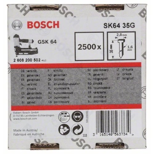 Mindestanzahl für die Bestellung von "Bosch Senkkopf-Stift SK64 35G, für Nagelpistolen" ist 1.