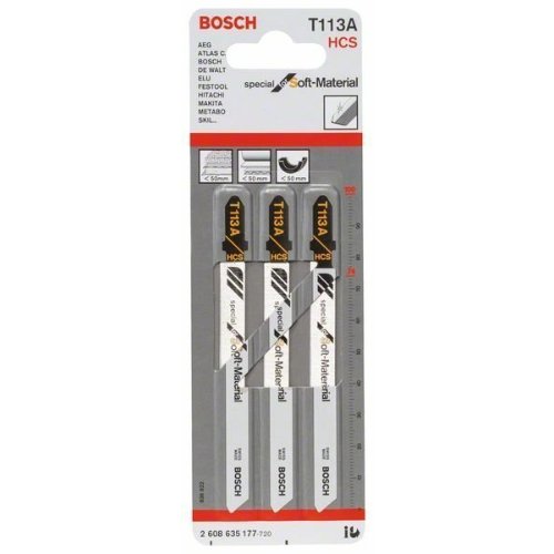 Das T 113 A Special for Soft Material Stichsägeblatt macht saubere gerade Schnitte in Sonderwerkstoffe. Die scharfe Messerschneide ist speziell für saubere Schnitte konzipiert. Das Blatt aus Kohlenstoffstahl ist zum Schneiden von nicht-abrasiven weichen Materialien, wie z. B. Karton, Styropor, Teppich, Leder, Gummi und vielen weiteren geeignet. Das Blatt mit Standard-Länge (100 mm) zum Schneiden von biegsamen Materialien mit einer Dicke bis zu 50 mm. Elektrowerkzeuge erfordern viel weniger Kraftaufwand als übliche Handmesser.