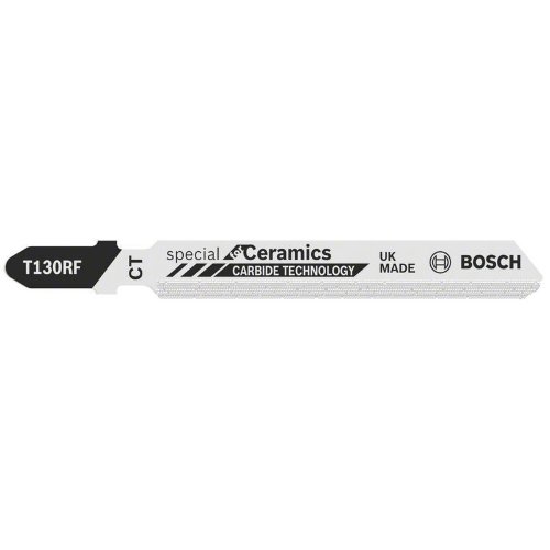 Das T 130 RIFF Special for Ceramics Stichsägeblatt ist besonders robust bei geraden Schnitten in Sonderwerkstoffen. Der grobe Carbide-Korn ist für den längeren Gebrauch bei abrasiven Keramikmaterialien konzipiert. Die Zahnleiste ist zudem mit der Carbide Technology an einen hochelastischen Kohlenstoffstahlkörper geschweißt, wodurch das Blatt durch Materialien, wie z. B. Wandfliesen in Keramik, schneiden kann. Der grobe Carbide-Korn (K30) schneidet weiche Wandfliesen aus Keramik mit einer Dicke von 5-15 mm.