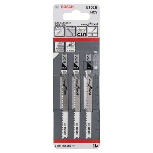 Das U 101 B Clean for Wood Stichsägeblatt macht saubere gerade Schnitte in Holz. Die präzisionsgeschliffenen Zähne mit Kegelschliffkörper ermöglichen makellose Ergebnisse. Das Blatt aus Kohlenstoffstahl ist zum Schneiden von Weichholz und nicht-abrasiven Holzwerkstoffen geeignet. Es ist mit einer fein progressiven Zahnteilung (2,7 mm) ausgestattet, um Holzwerkstoffe mit einer Dicke von 3-30 mm zu schneiden.