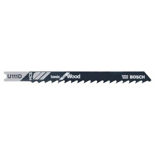 Das U 111 D Basic for Wood Stichsägeblatt macht gerade Schnitte in Holz. Die gefrästen, geschränkten Zähne sind ideal für Schnitte ohne besondere Anforderungen. Das Blatt aus Kohlenstoffstahl ist für Weichholz und nicht-abrasive Holzwerkstoffe geeignet. Die große Zahnteilung (4 mm) ermöglicht das Schneiden von Weichholz mit einer Dicke von 5-65 mm.