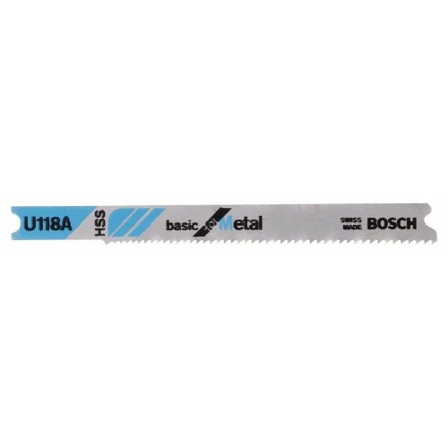 Das U 118 A Basic for Metal Stichsägeblatt macht gerade Schnitte in Metall. Die gefrästen, gewellten Zähne sind ideal für Schnitte ohne besondere Anforderungen. Das Blatt aus hochwertigem gehärtetem HSS (Hochgeschwindigkeitsstahl) ist zum Schneiden von nicht perforierten Metallblechen mit Standard-Stärke geeignet. Die sehr fein progressive Zahnteilung des Blatts (1,1-1,5 mm) ermöglicht es, eine Vielzahl an sehr dünnen massiven Metallblechen mit einer Dicke von 1-3 mm zu schneiden.