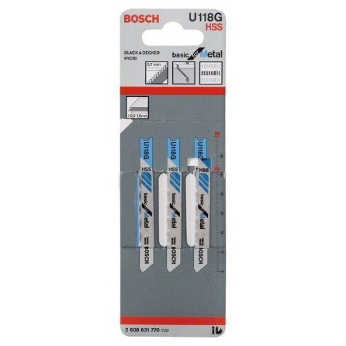 Das U 118 G Basic for Metal Stichsägeblatt macht gerade Schnitte in Metall. Die gefrästen, gewellten Zähne sind ideal für Schnitte ohne besondere Anforderungen. Das Blatt aus hochwertigem gehärtetem Hochgeschwindigkeitsstahl ist zum Schneiden von nicht perforierten Metallblechen mit Standard-Stärke geeignet. Die sehr feine Zahnteilung des Blatts (0,7 mm) ermöglicht es, sehr dünne massive Metallbleche mit einer Dicke von 0,5-1,5 mm zu schneiden.