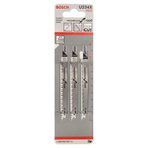 Das U 234 X Progressor for Wood Stichsägeblatt für den Gebrauch bei dickem oder dünnem Holz macht saubere gerade Schnitte. Die Zahngeometrie mit progressiv ansteigender Zahnteilung ermöglicht den Gebrauch bei Materialien mit unterschiedlichen Dichten. Die Kombination des Kegelschliffkörpers, der präzisionsgeschliffenen Zähne und der mehrfach geschliffenen japanischen Zahngeometrie ermöglicht sauberes Schneiden. Das Blatt aus Kohlenstoffstahl ist zum Schneiden von Weichholz und nicht-abrasiven Holzwerkstoffen geeignet. Es ist mit einer mittleren progressiven Zahnteilung (2-3 mm) und einer großen Länge (117 mm) ausgestattet, um eine breite Vielzahl an Holzwerkstoffen mit einer Dicke von 3-65 mm zu schneiden.
