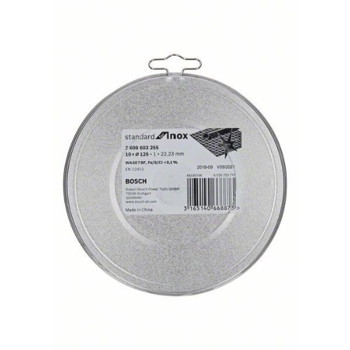 Die Trennscheibe Standard for Inox Rapido sorgt für zuverlässige Leistung in Stahl. Die schmale Schneide der Scheibe sorgt für glatte Schnitten ohne großen Kraftaufwand. Zudem ist die Scheibe frei von Eisen, Schwefel und chlorierten Füllstoffen. Diese Scheibe zum Schneiden von rostfreiem Stahl verwenden. Trennscheiben von Bosch erfüllen die höchsten Sicherheitsanforderungen wie EN 12413.