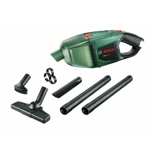Trockensauger EasyVac 12. Der leistungsstarke Akku-Handstaubsauger für verschiedenste Anwendungen. Wird durch Erweiterungsrohre und eine Bodendüse zum Bodenstaubsauger. Zuverlässige Laufzeit und eine konstante Saugleistung mit einer Akkuladung. Flachfaltenfilter und Vorfilter schützen die Bauteile im Gerät vor Staub. Fugendüse für die Reinigung schwer zugänglicher Bereiche. Bürstendüsenaufsatz für die sorgfältige Reinigung von Teppichen und rauen Oberflächen. POWER FOR ALL: Ein Akku für das komplette Home & Garden Gerätesystem. Im Lieferumfang enthalten: Bürstendüse (1 619 PA9 896), Fugendüse (1 619 PA9 897), Bodendüse (1 619 PA9 899), 2 Verlängerungsrohre (1 619 PA9 898), Filtereinheit (2 607 432 046), Zubehörhalterung (1 619 PA9 901), Karton