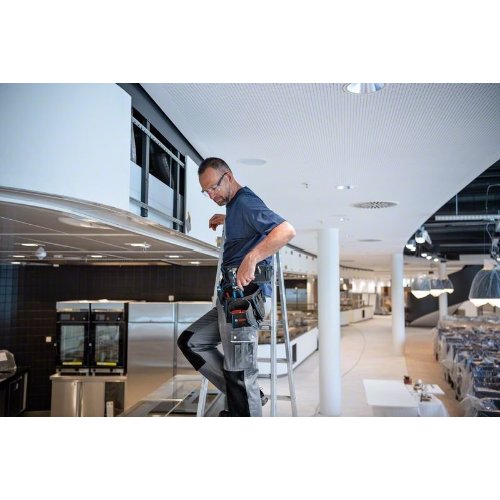 Werkzeugtasche GWT 2, Die Bosch Professional Werkzeugtasche GWT 2 verfügt über ein optimales Platzangebot für wichtige Werkzeuge und Kleinteile. Ihr intelligentes Design und durchdachte Fächereinteilung ermöglicht einen einfachen Zugriff und eine individuelle Werkzeugorganisation. Für eine leichte Handhabung kann die Tasche dank ihres integrierten Taschenständers aufrecht abgestellt werden. Volle Konzentration auf die Arbeit, da alle Werkzeuge und Zubehöre ordentlich verstaut und immer zur Hand sind. Die strapazierfähige Tasche ist stichsicher dank Doppelnaht und verstärktem Design mit Polyester 1000D. Das Bosch Professional ProClick System bietet eine einfache Möglichkeit, ProClick-Gürteltaschen am Gürtel zu befestigen, sie zu wechseln und zu verstellen, ohne den Gürtel abnehmen zu müssen.